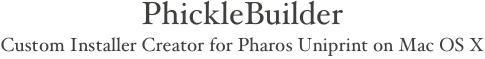 Phickle started out as an internal solution at UT Austin as part of the campus-wide switchover to Pharos Uniprint in 2007. Phickle both greatly improved the end-user experience of Mac Uniprint client installation, and the creation of many installers subsets targeted to individual departments, buildings, computer labs, etc.